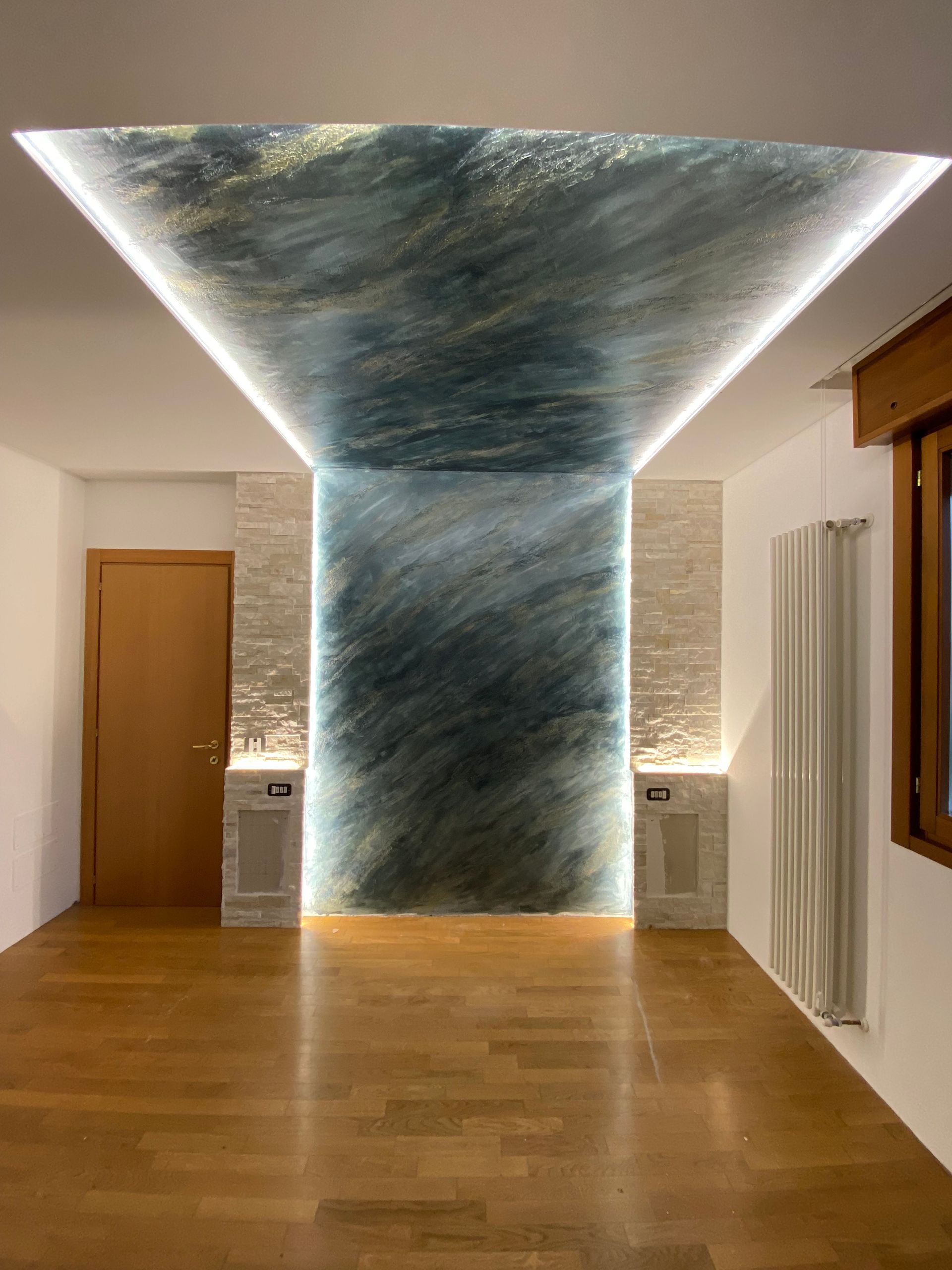 - rivestimento all’acqua a spessore dotato di particolari effetti anticati;